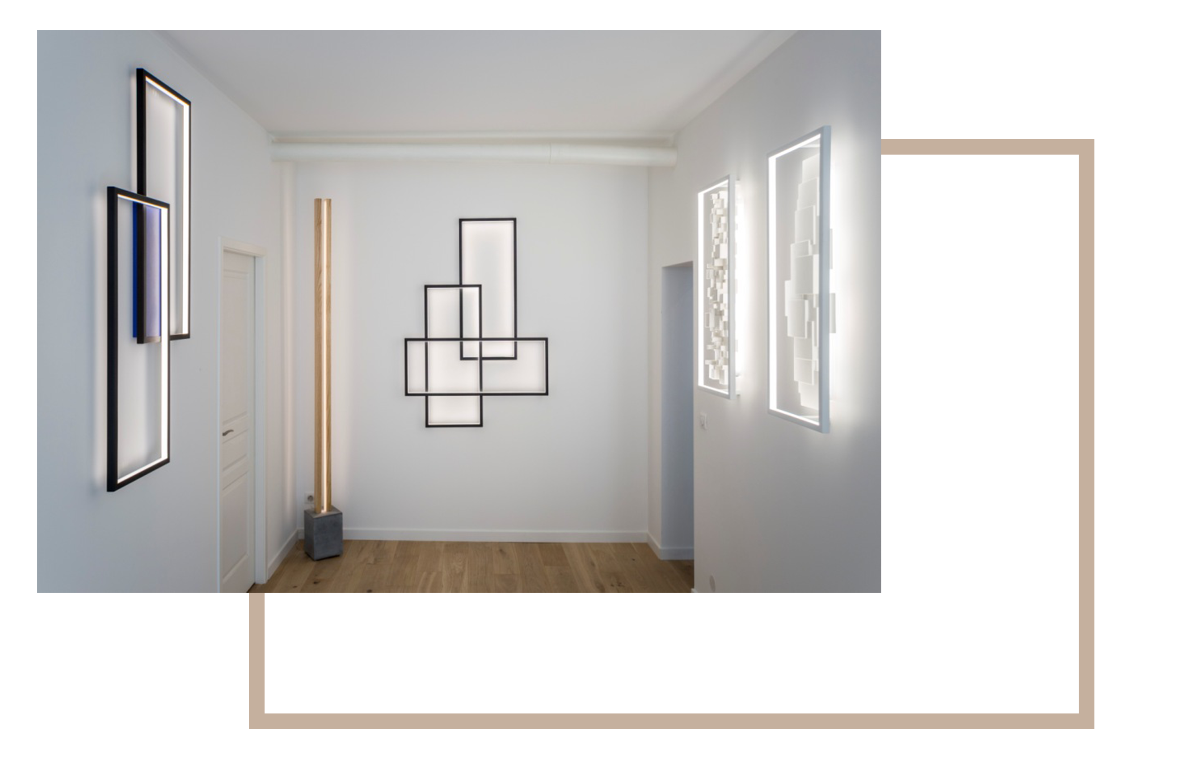 Les luminaires sont à LED, et sont présents sous des formes originales : en trio, en duo, en cascade, ou encore en sculpture. Des formes au design uniques, avec une LED se commandant directement via une télécommande, permettant même créer des scénarios artistiques.